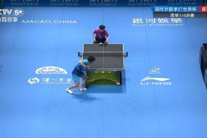 第5局张本智和发球遮挡,随后鹰眼挑战失败。