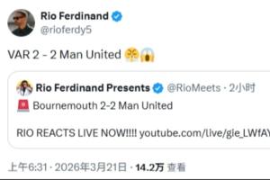 怒了!曼联遭遇双标判罚,费迪南德愤怒发文:VAR2-2曼联